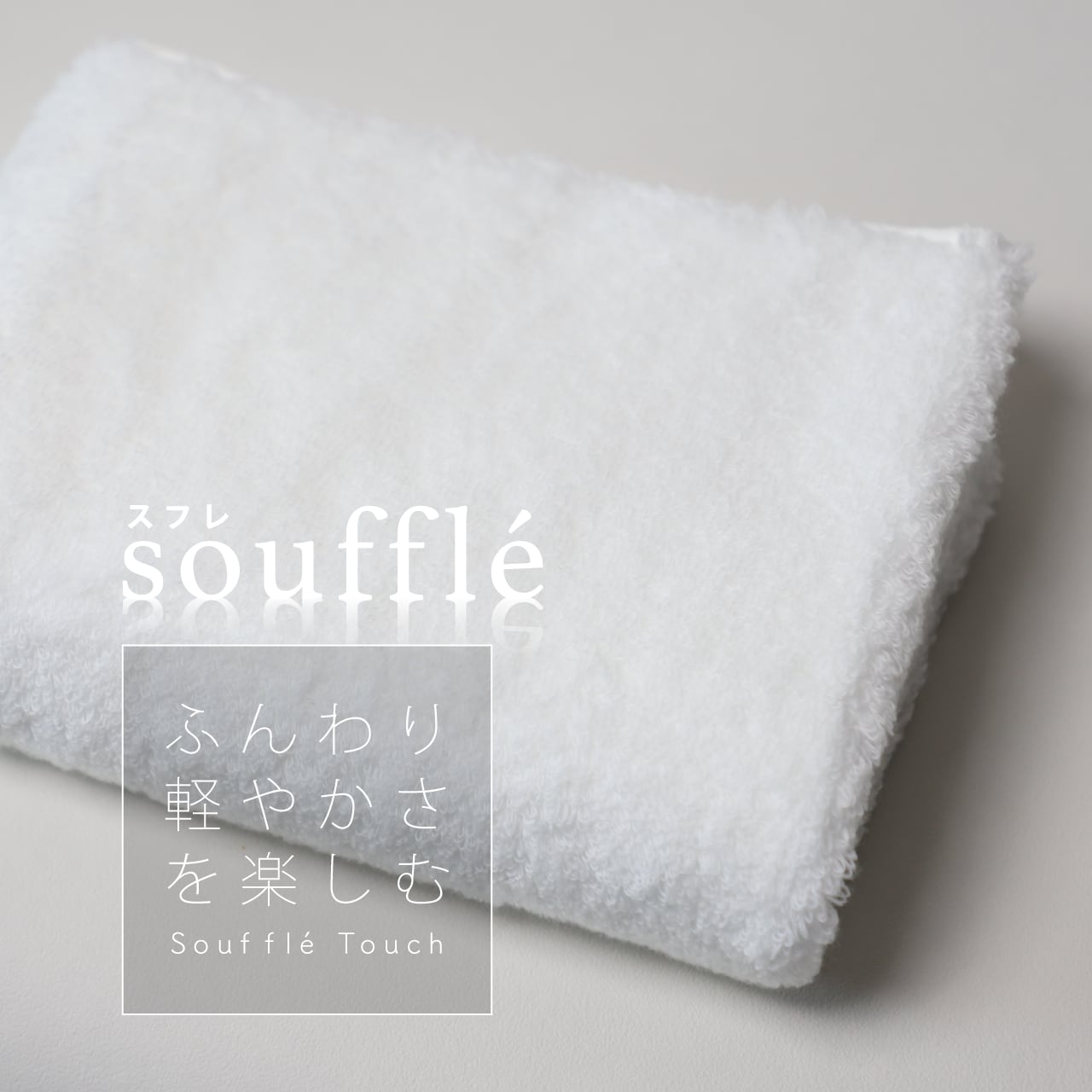 『スフレ フェイスタオル』は、繊維の一本一本を丁寧に整え、短繊維を取り除いた細番手のコーマ糸を使用した無撚糸タオルです。
