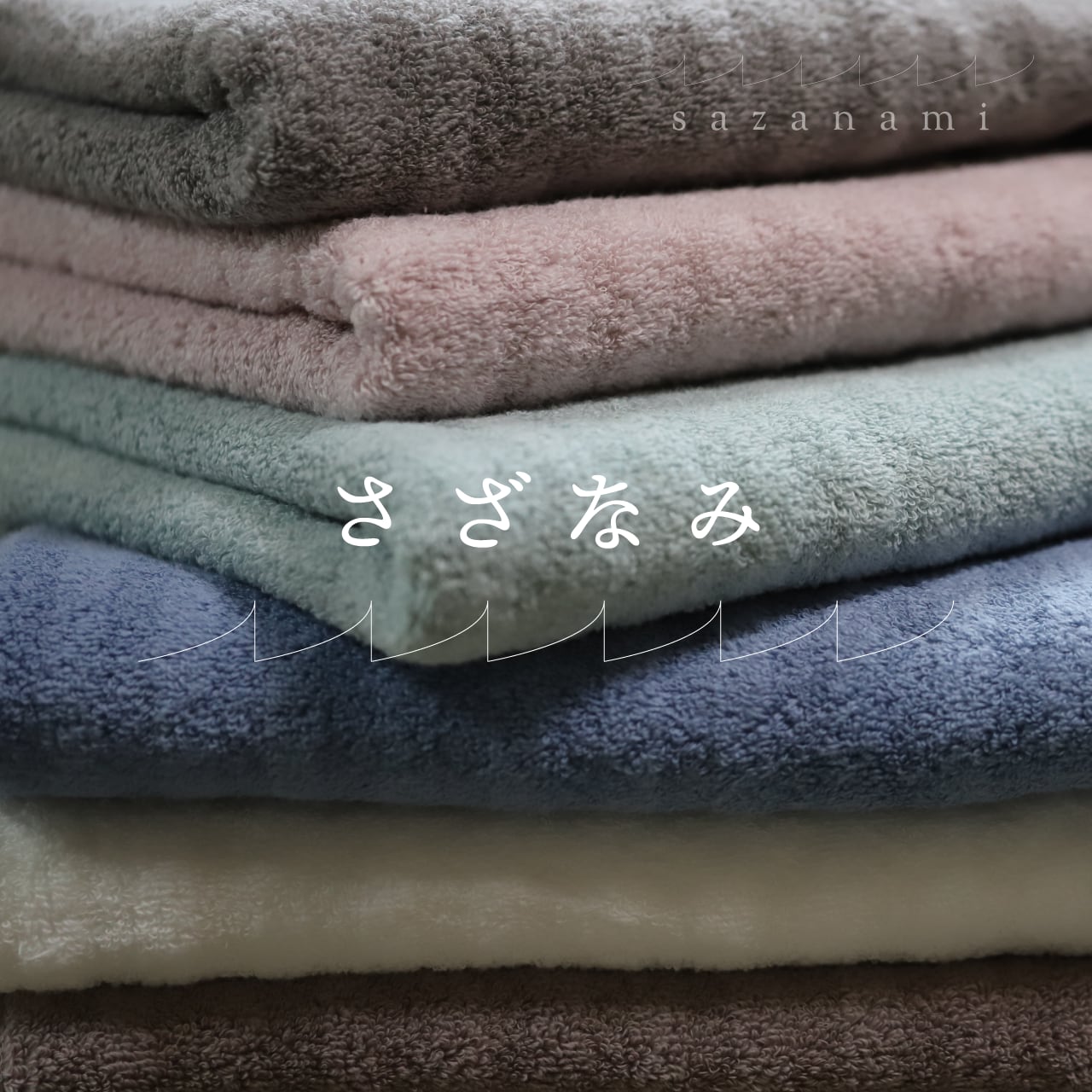 無撚糸を使用した『さざなみ フェイスタオル』は、ふんわりとした優しい風合いと綿本来の柔らかさが大きな魅力です。特別な織り方により、軽やかでありながらボリューム感のあるタオルに仕上げています。お肌に優しく触れ、吸水性にも優れているため、バスタイムやお顔のお手入れに最適です。水面に映える、さざなみの様なうっすらストライプになったフォルムになります。